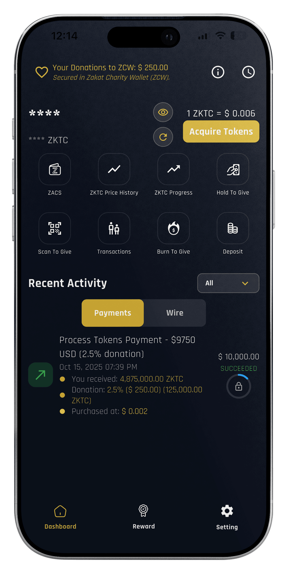 HTG (Hold-to-Give) Engine live ZKT-Badge recognition system Zakolympics Beta launch Global NGO partner expansion